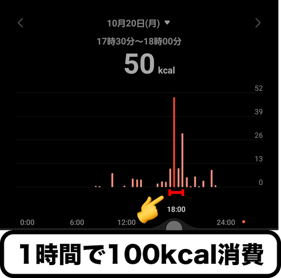 俺調べによると50分歩いた時の消費カロリーは約220kcalで↓